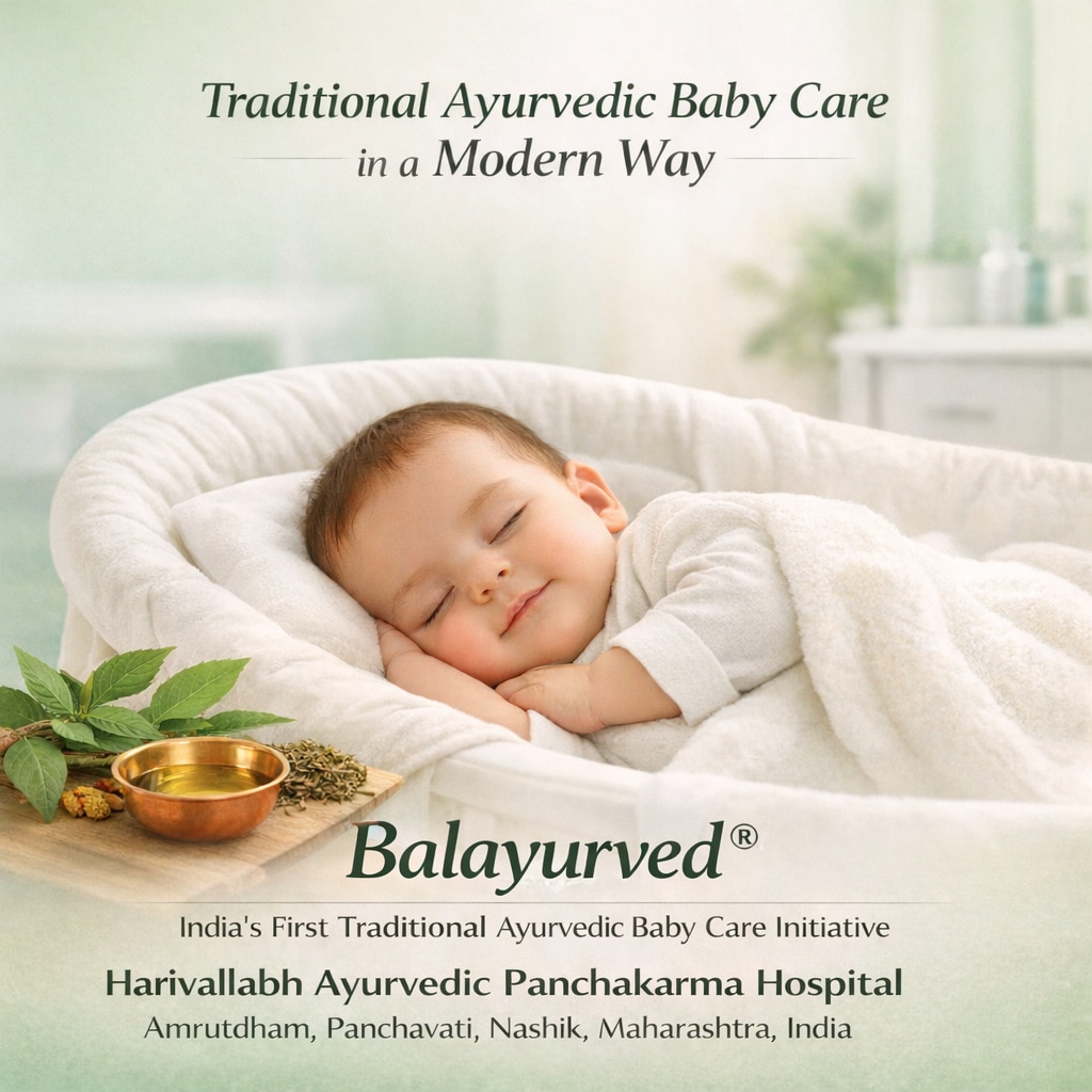 Balayurved® is India’s First Traditional Ayurvedic Baby Care Initiative, developed at Harivallabh Ayurvedic Panchakarma Hospital, Amrutdham, Panchavati, Nashik, Maharashtra, India — a center known for authentic Panchakarma and pediatric Ayurvedic excellence.